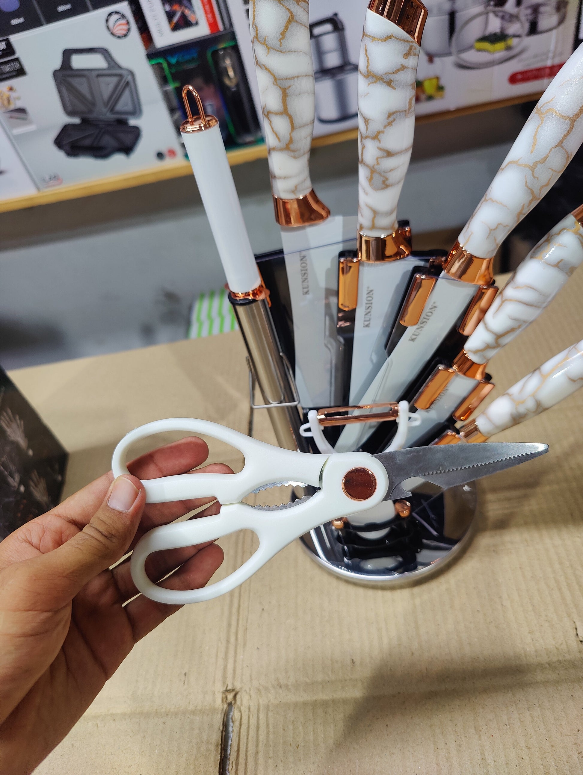 - Scissor & sharpening rod included