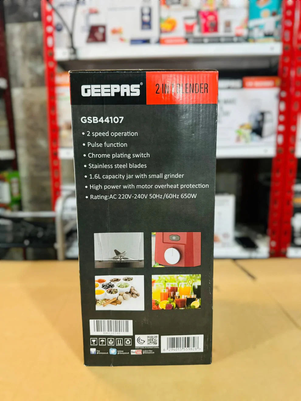 Geepas 1.6L 2 in 1 Blender 650W -44107