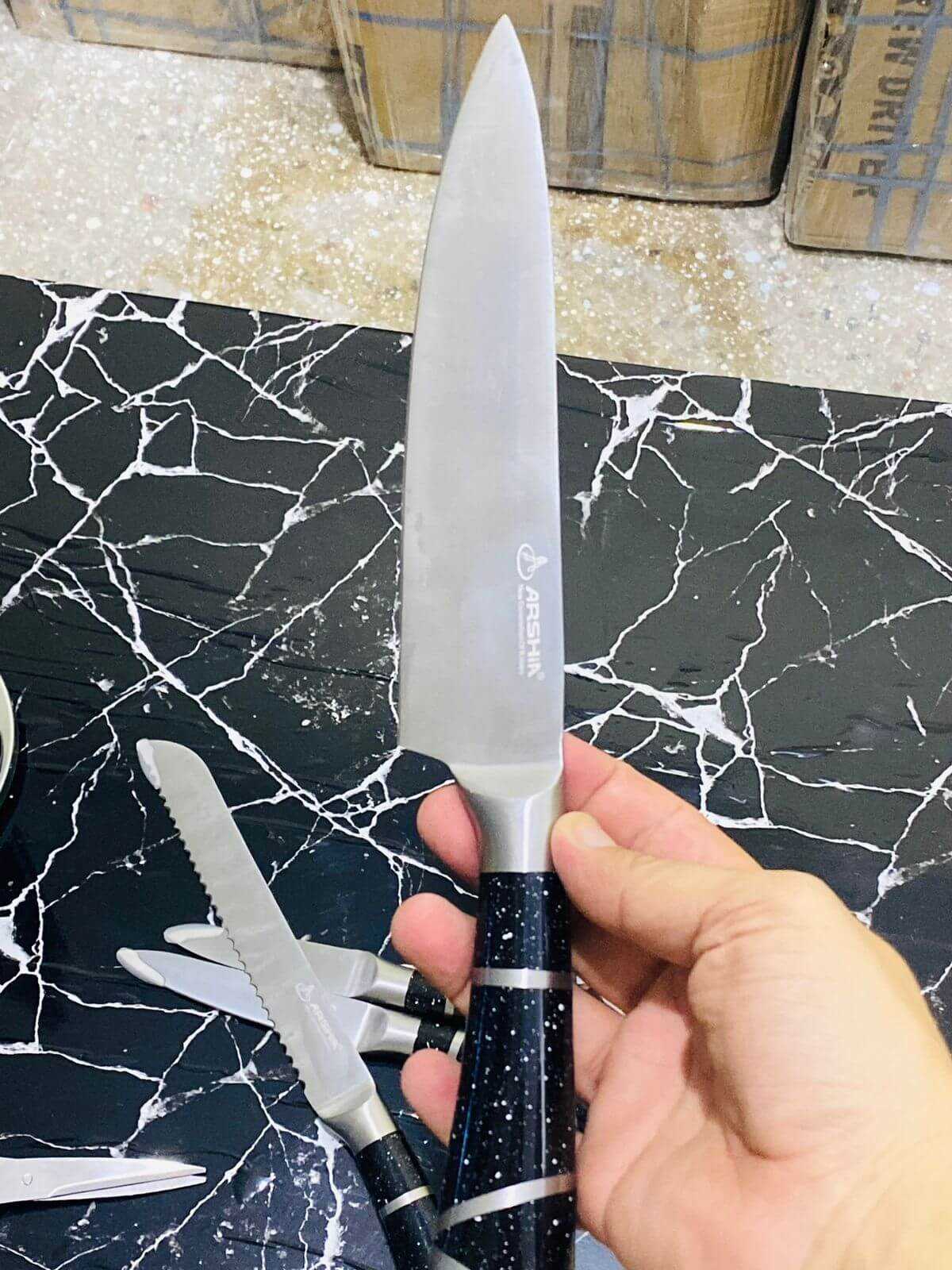 Arshia 9 pcs knife set expertly crafted with precision and durability, the ARSHIA 9 piece knife set is designed for the professional chef or culinary enthusiast. Each knife is carefully engineered using quality materials and expert techniques, ensuring optimal performance and superior results in the kitchen. Elevate your cooking experience with this essential set.