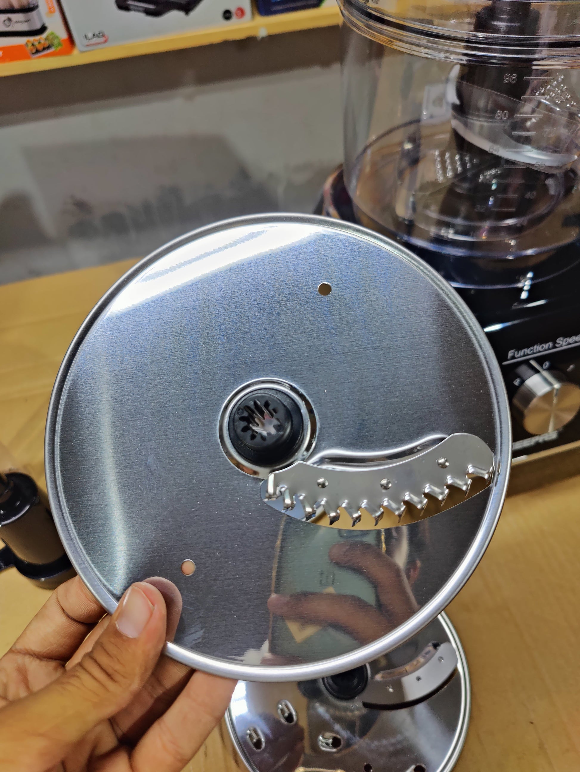 - 3 stainless steel discs for slicing, grating, and shredding